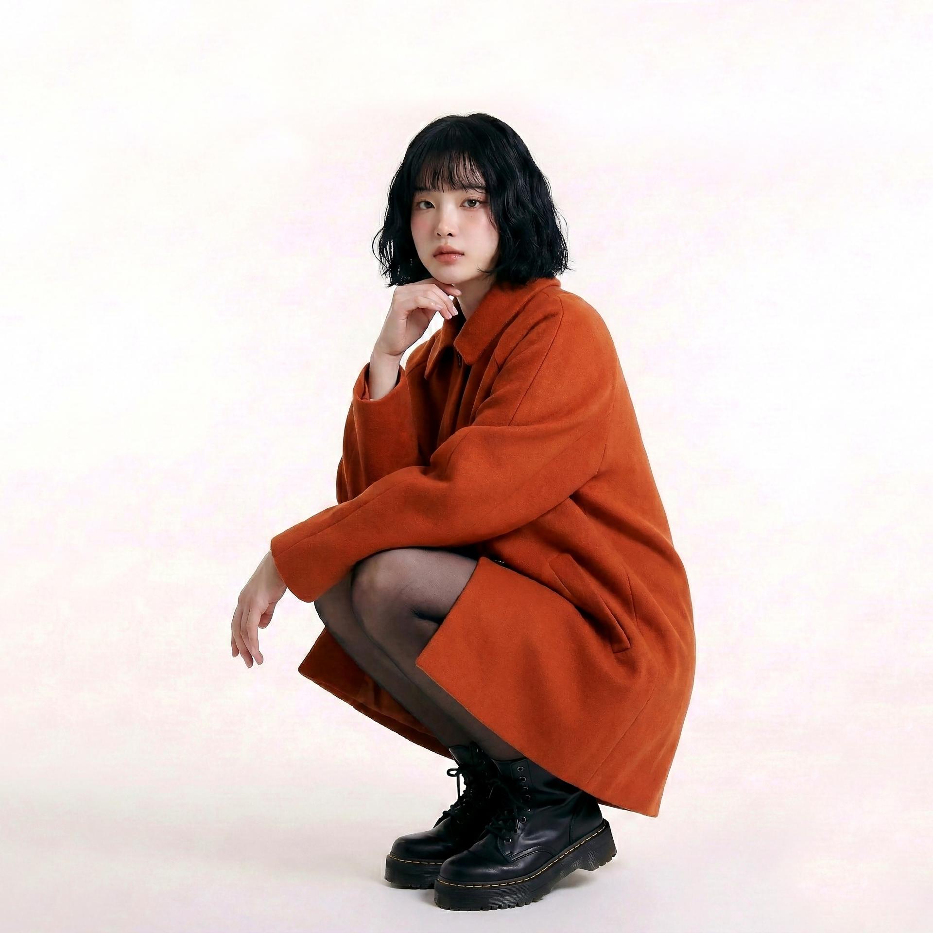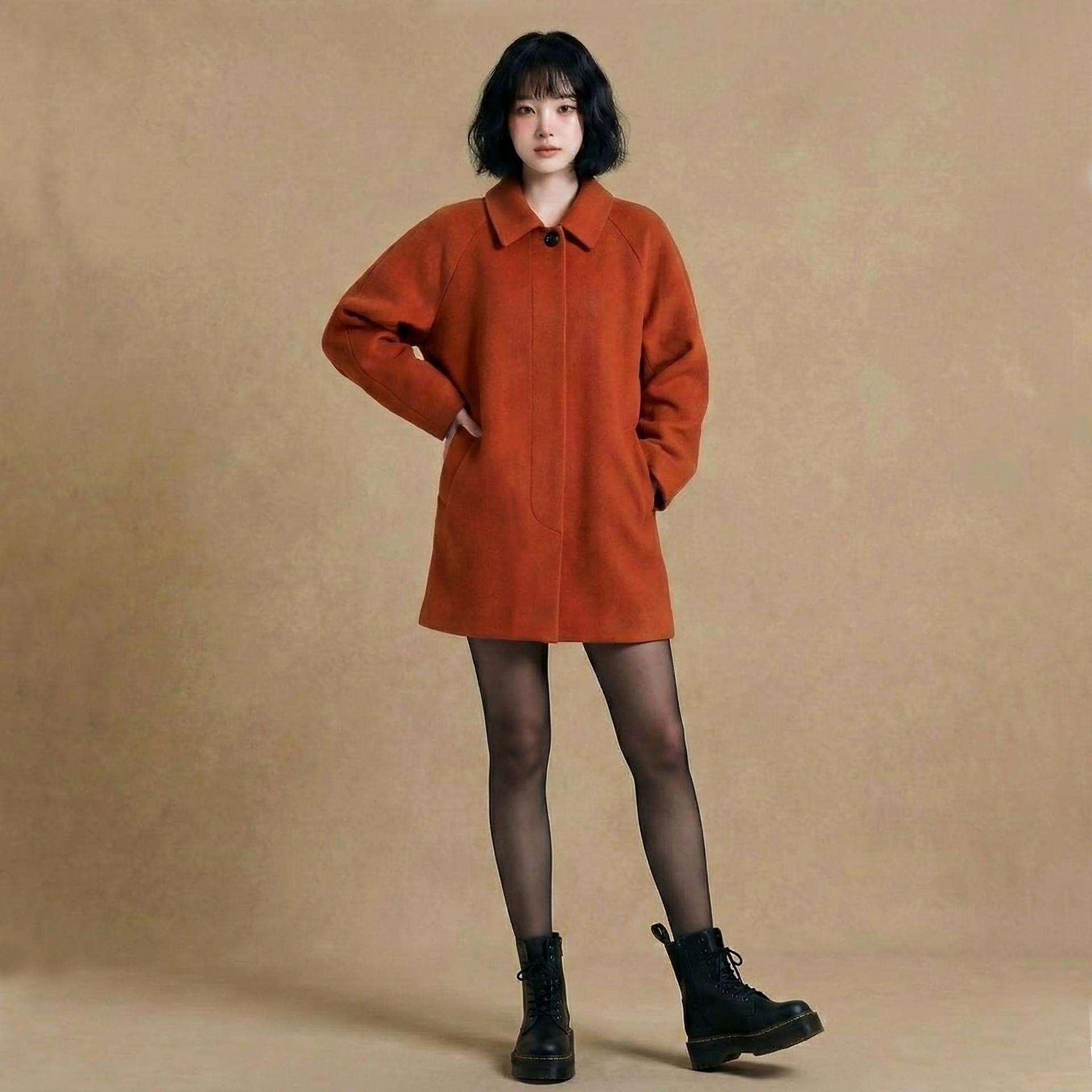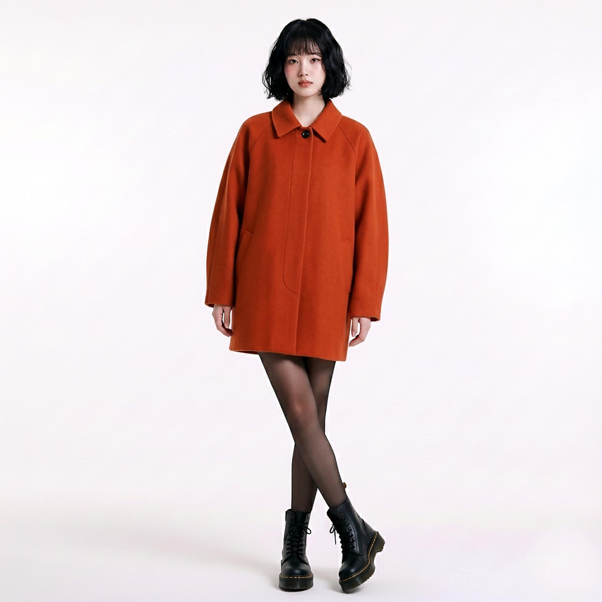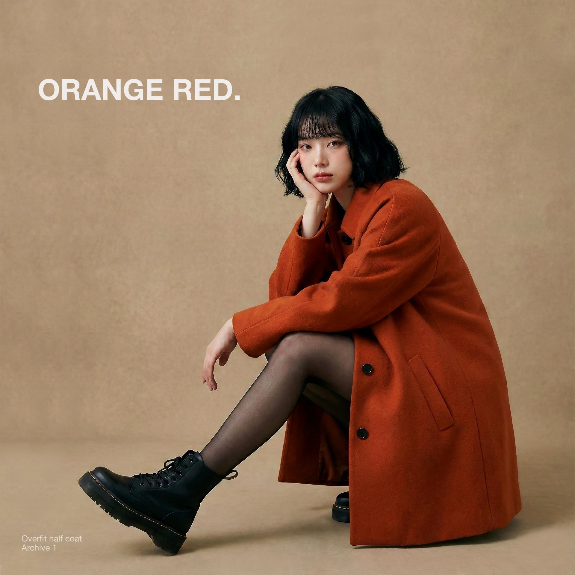 Orange Red Overfit Half Coat