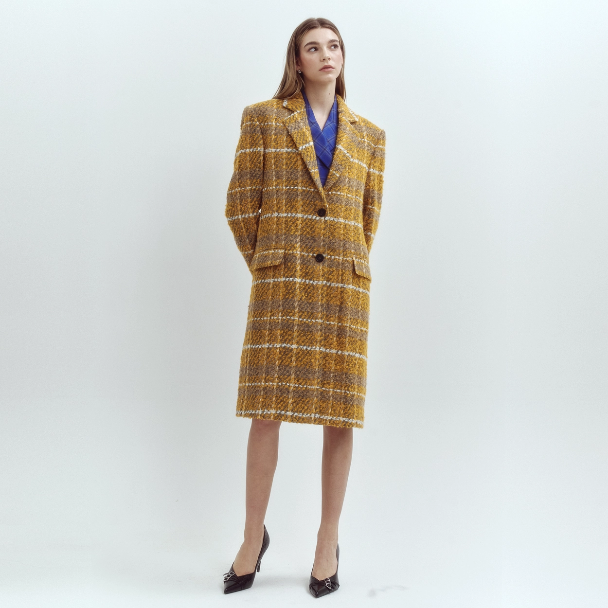 오버핏 옐로우체크 싱글버튼 코트