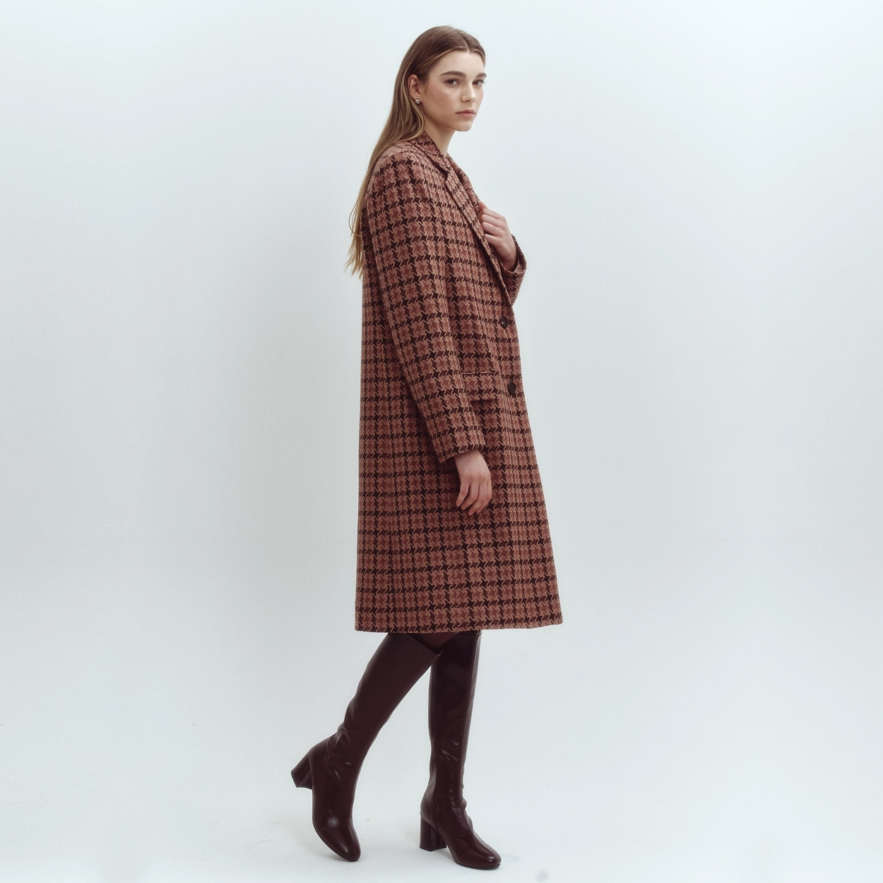 오버핏 하운드투스 싱글버튼 코트