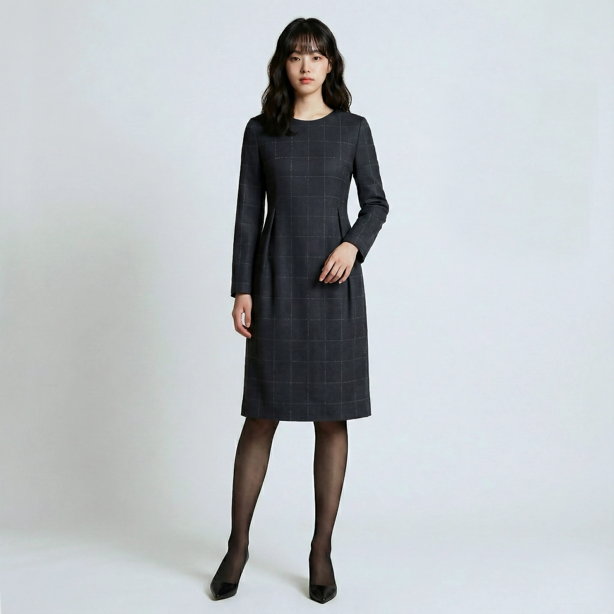 H라인 윈도우체크 울원피스