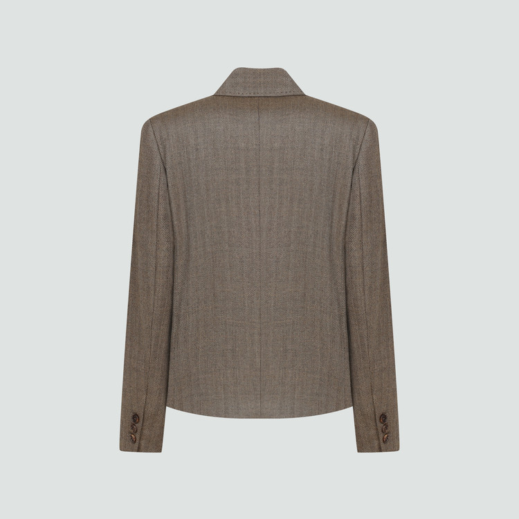 라펠과 포켓에 두툼하게 더해진 호시 스티치.