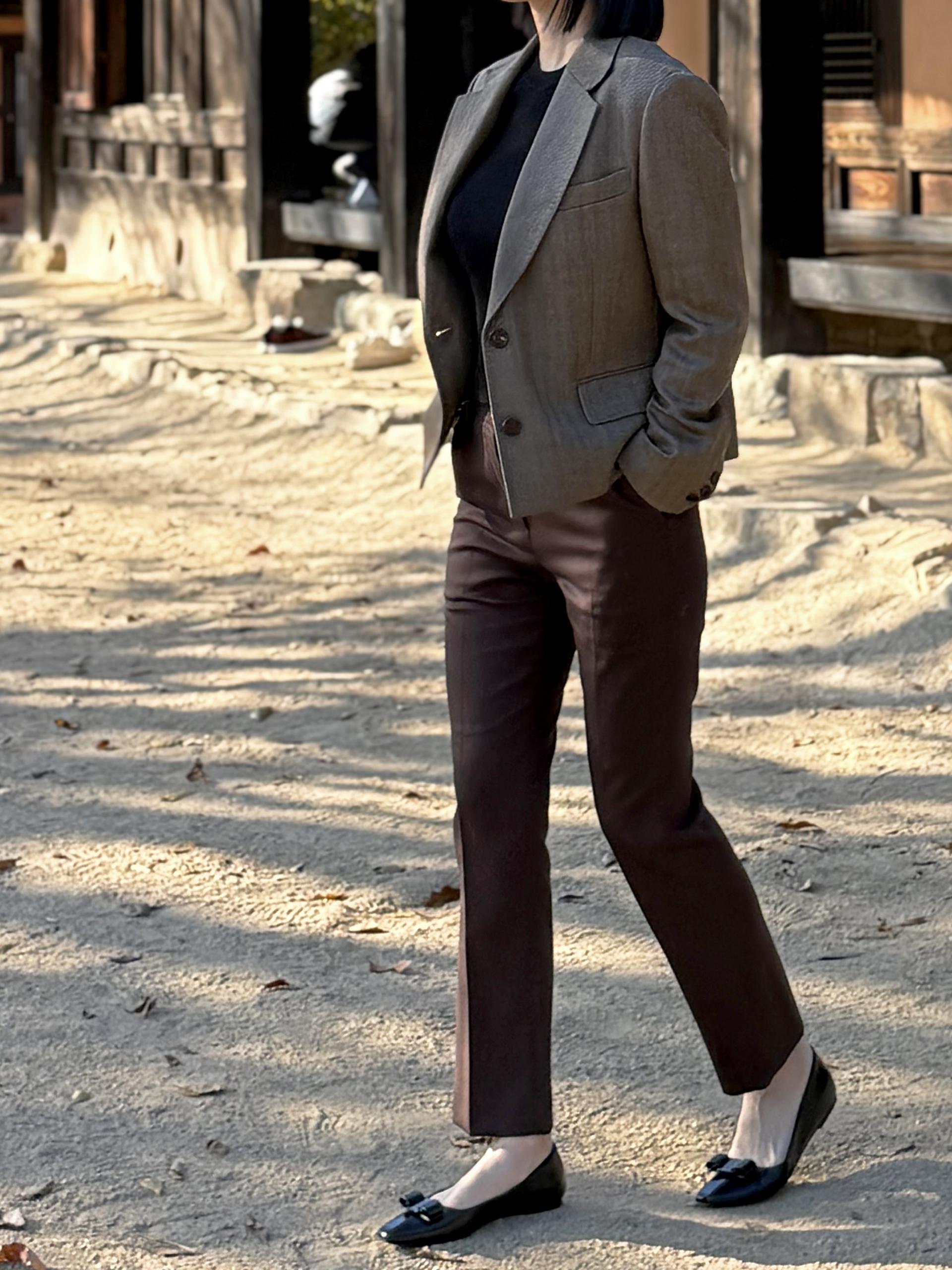 단정함과 흐름 사이에 균형을 잡아줍니다.