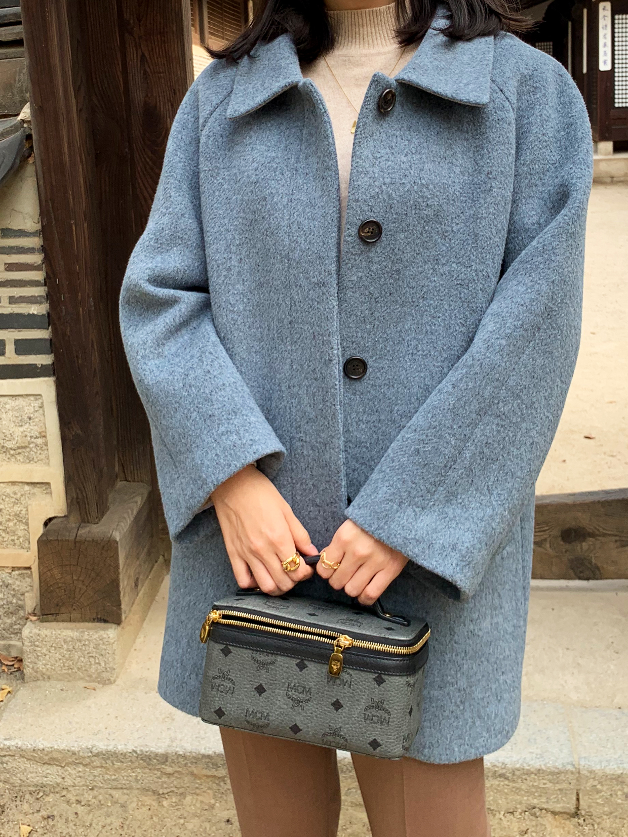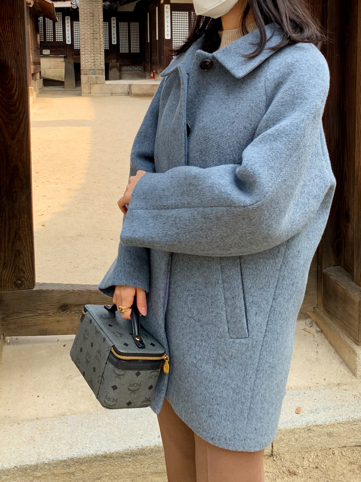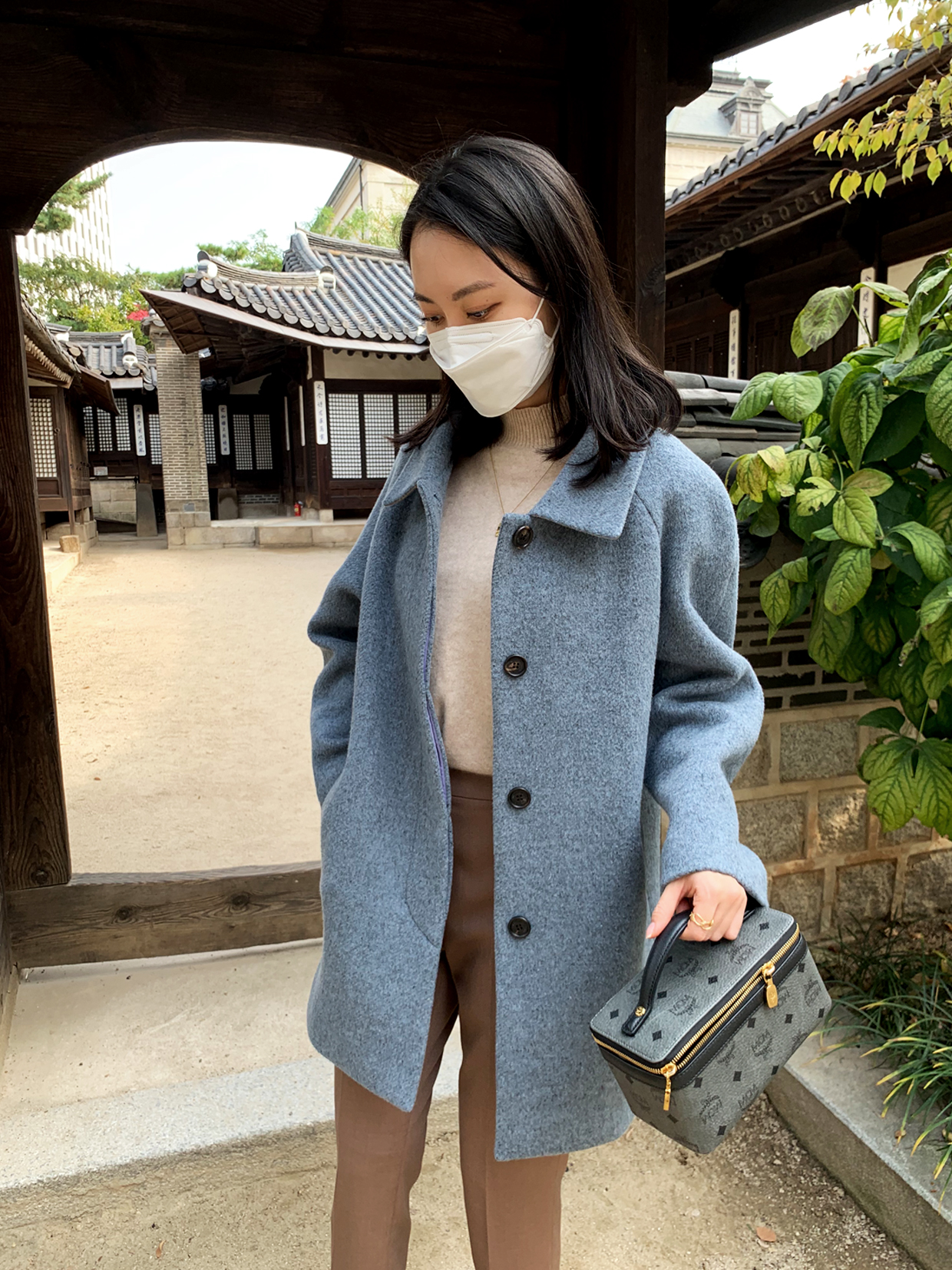 이렇게 블루그레이 컬러의 하프코트 하나 있으시면