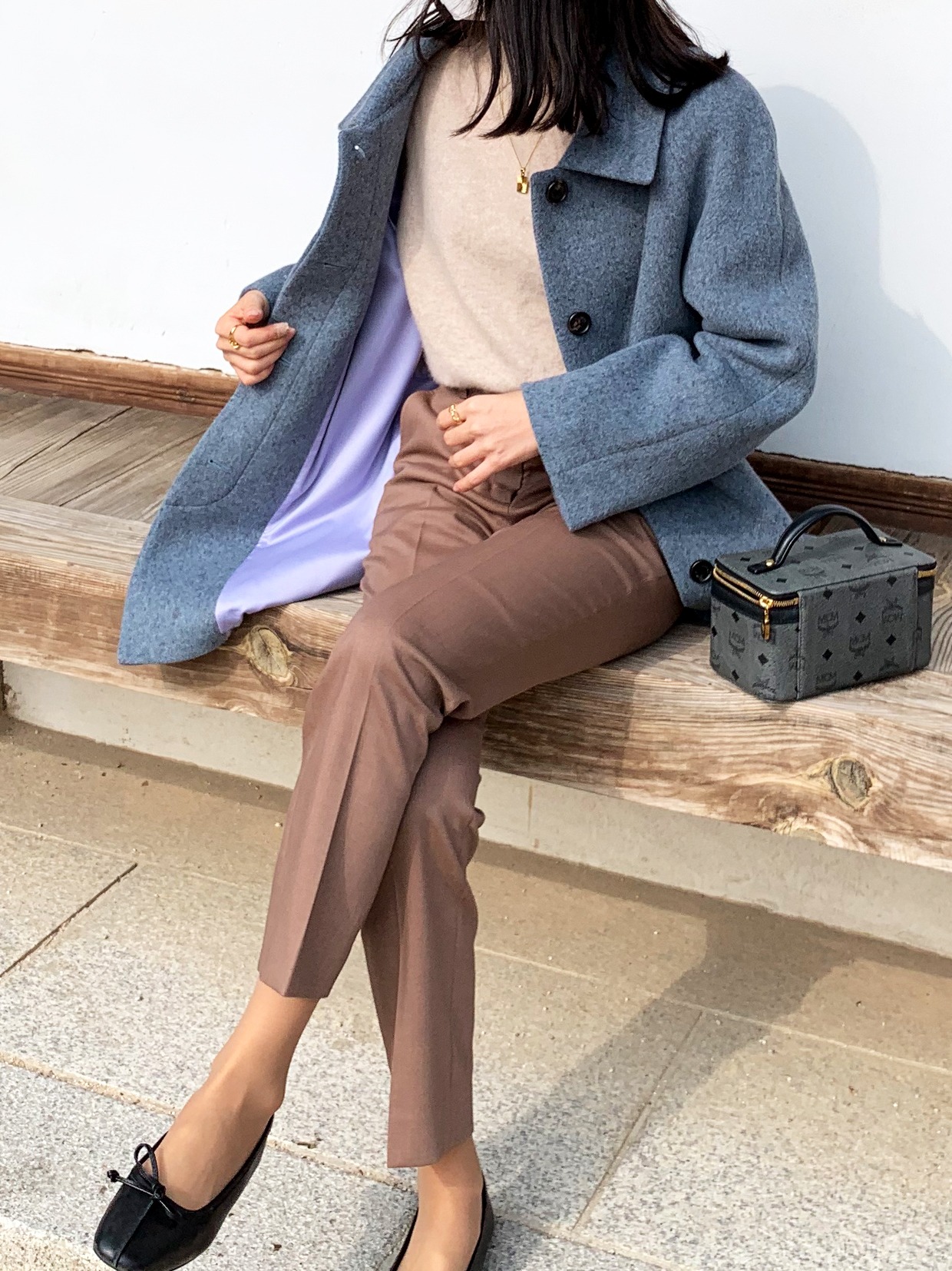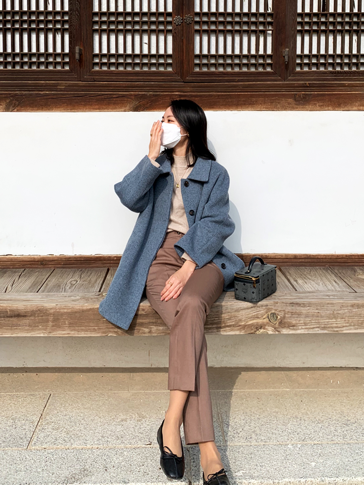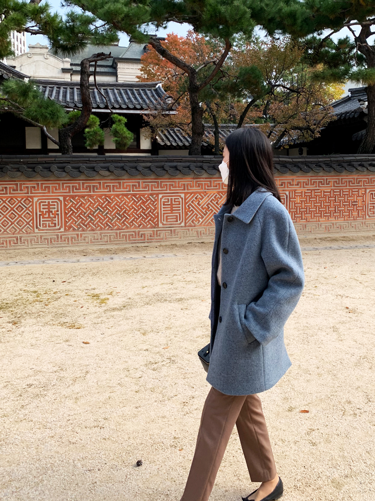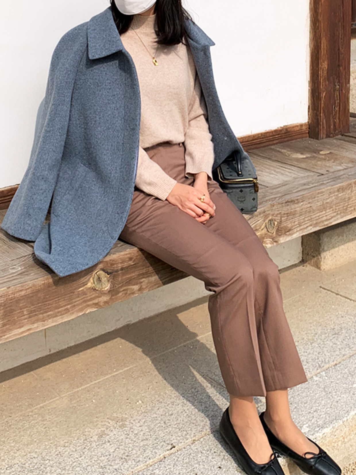 이렇게 블루그레이 컬러의 하프코트 하나 있으시면