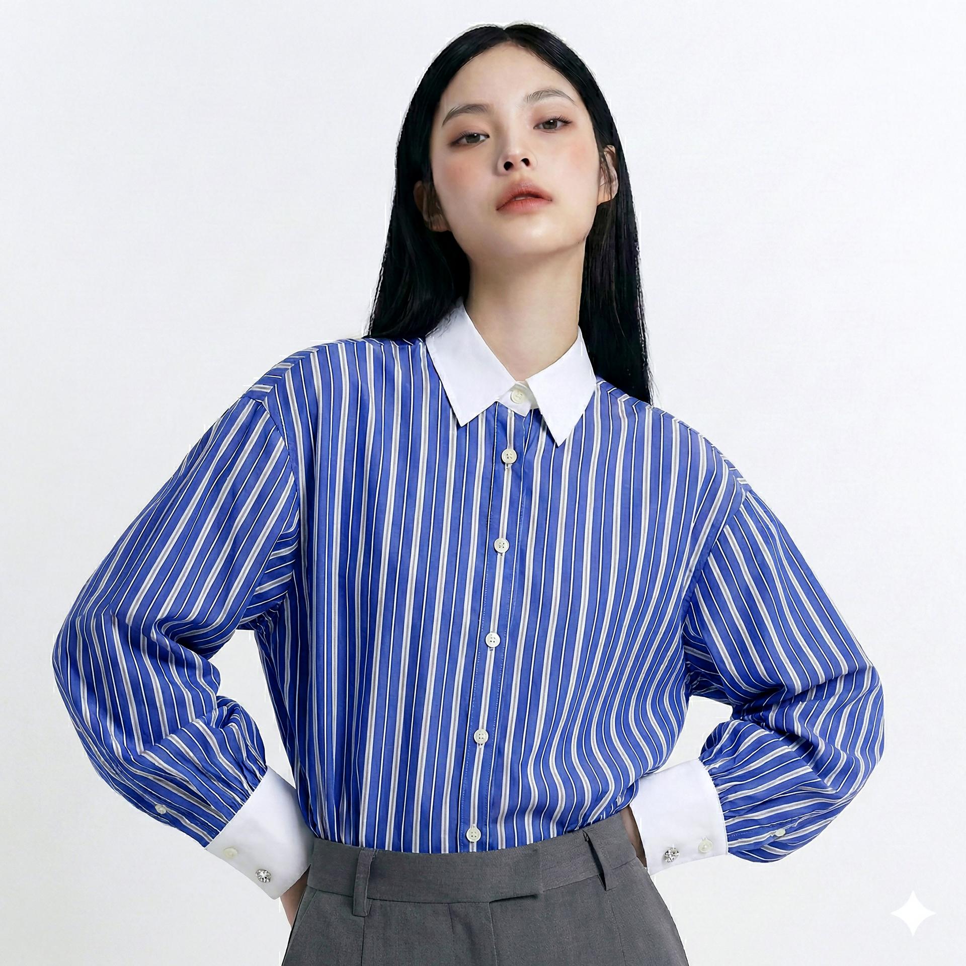 - 스트라이프 셔츠의 클래식한 이미지 위에