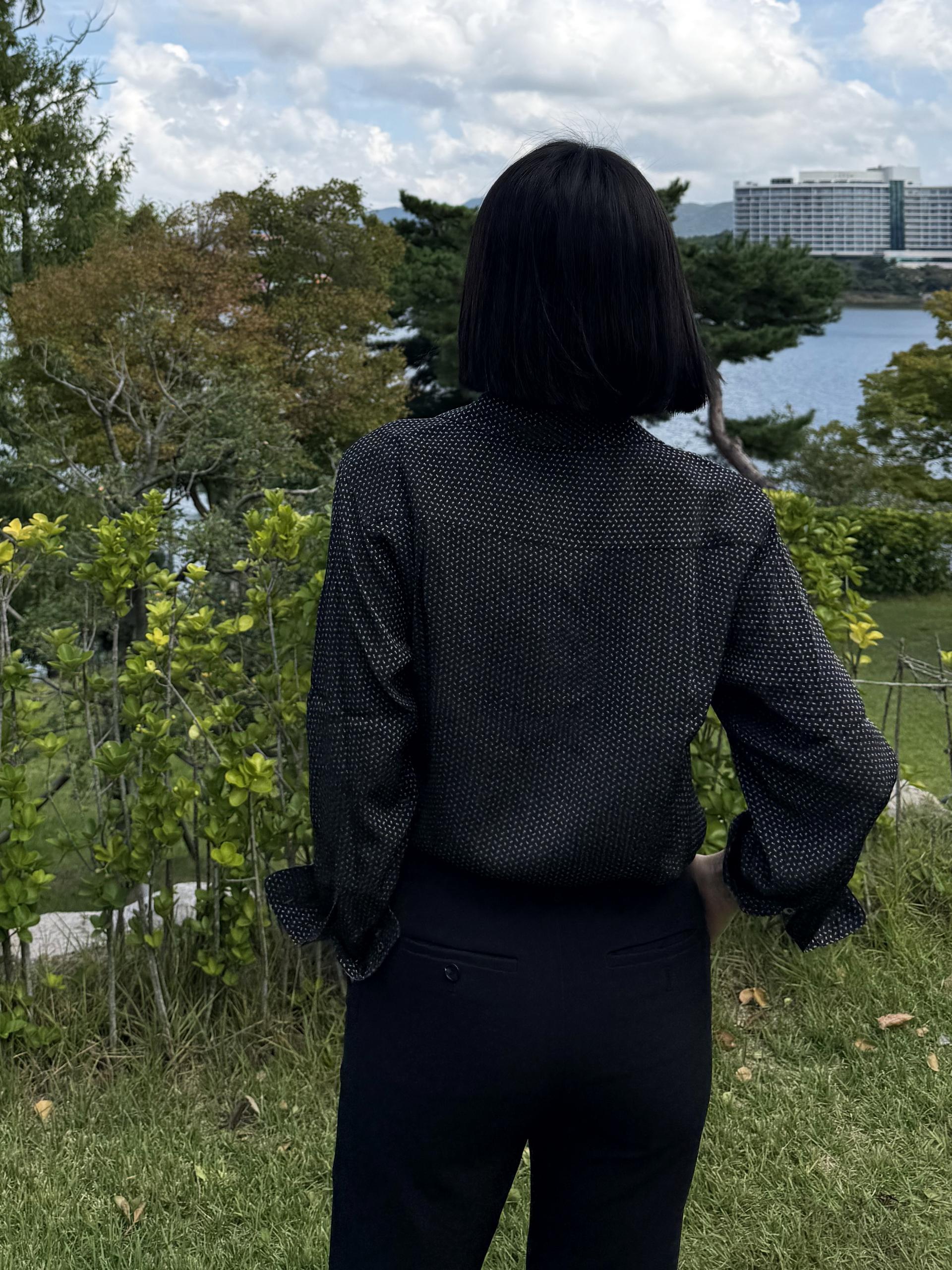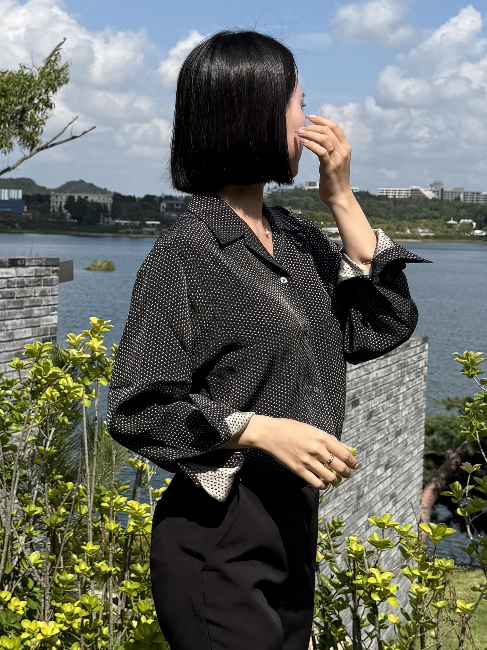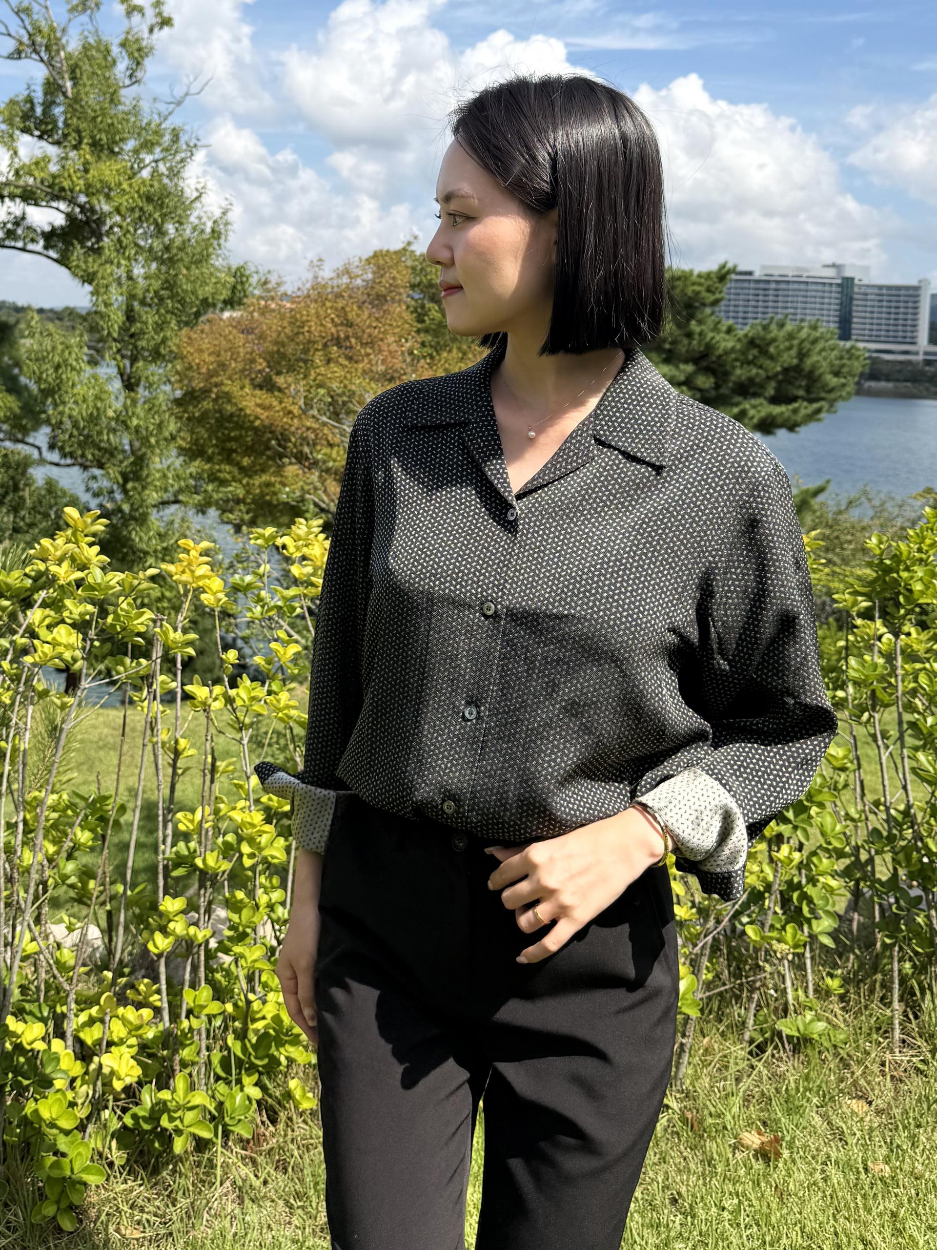 오픈카라 블라우스로 계절의 흐름을 입어보세요.