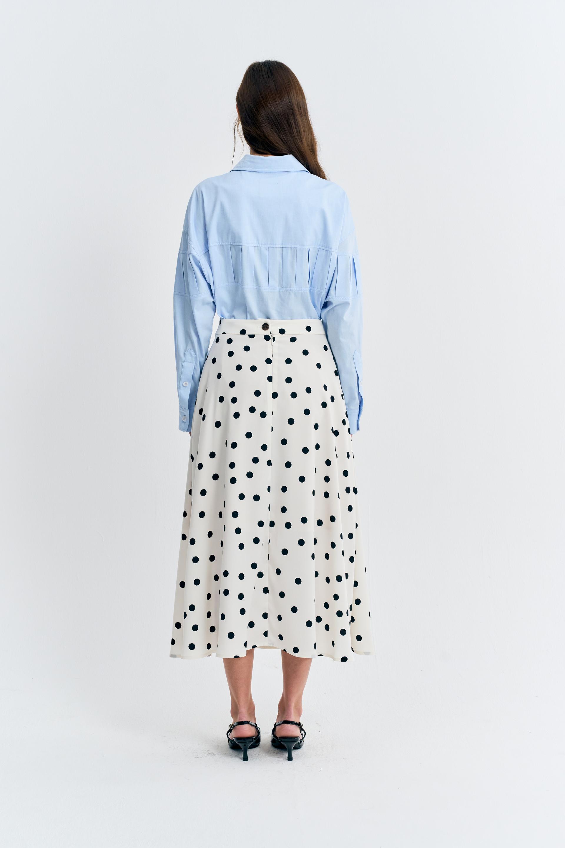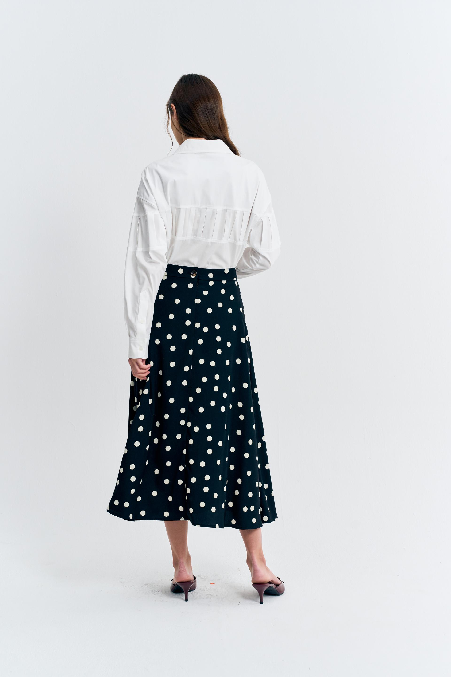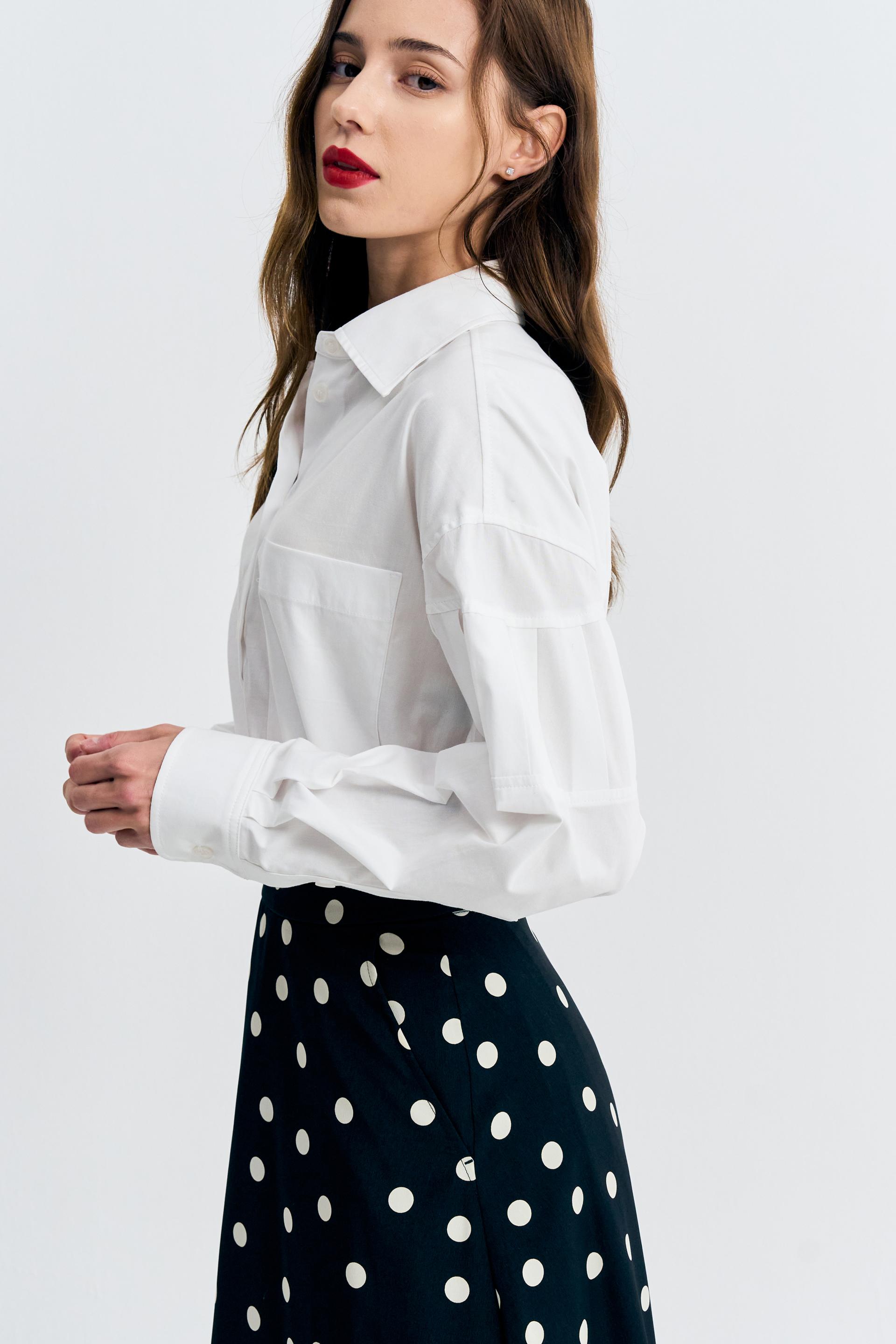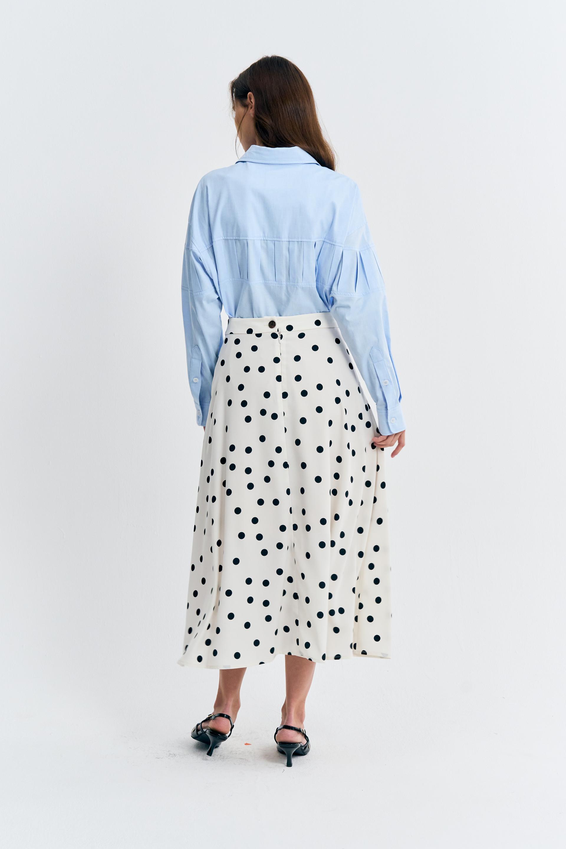 등 부분에 대칭형 플리츠를 제작하여 셔츠에 접목.