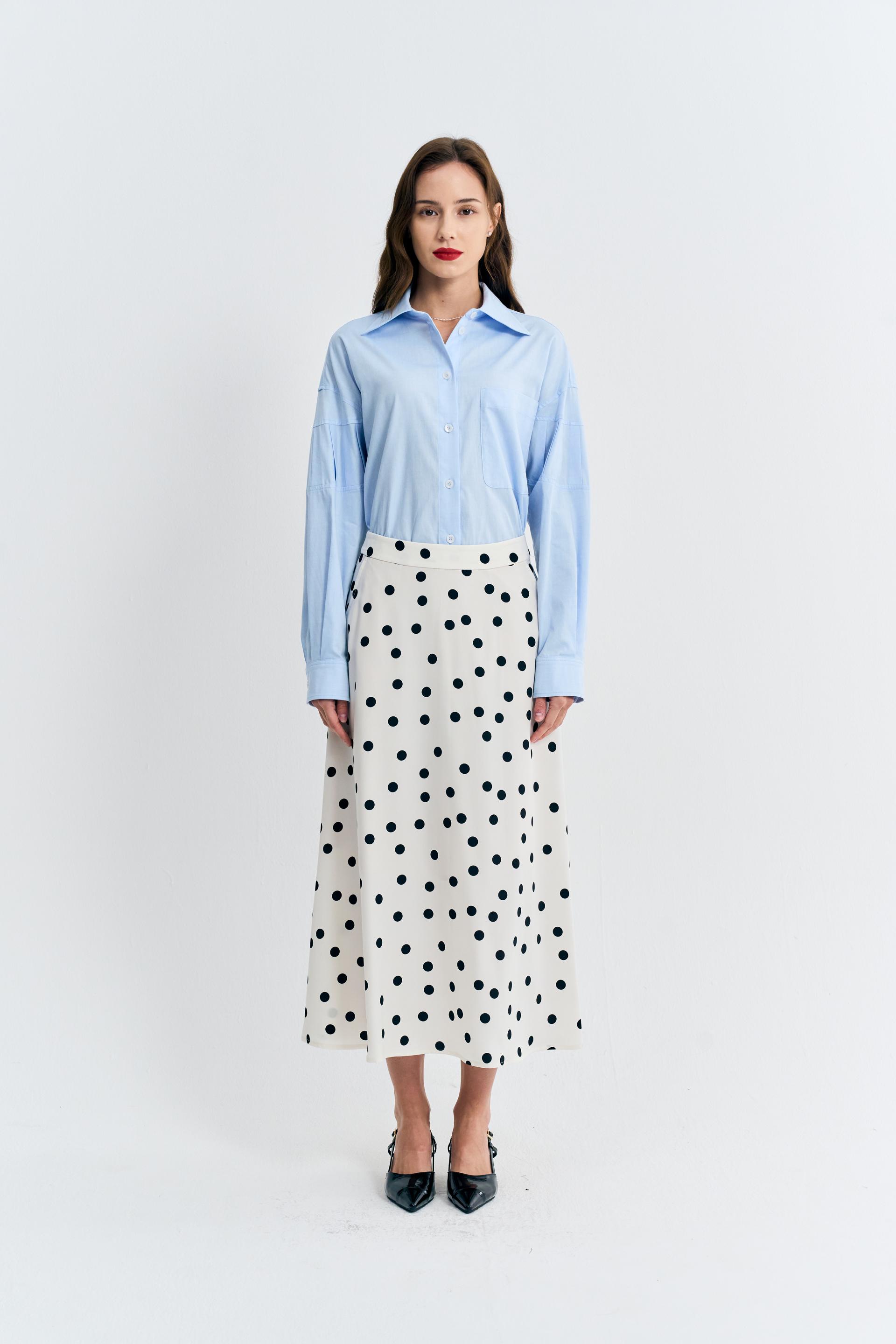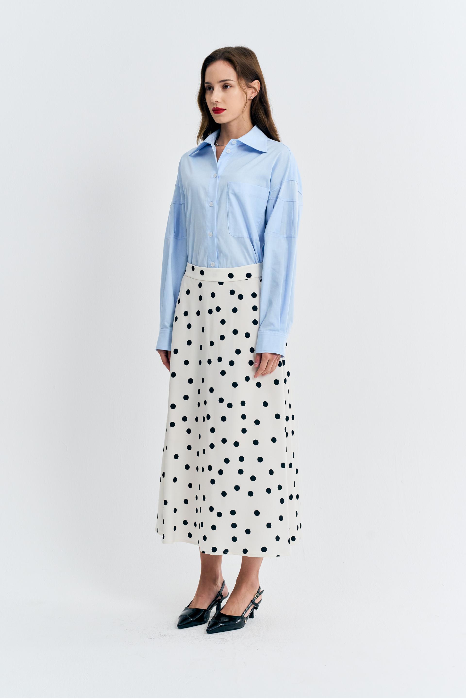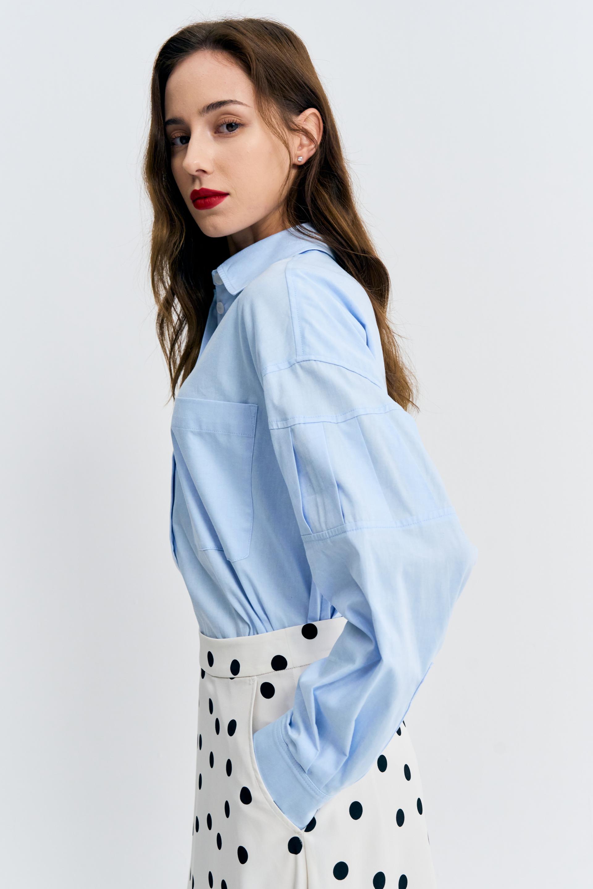 오버사이즈 실루엣의 셔츠로서, 양쪽 팔 둘레와