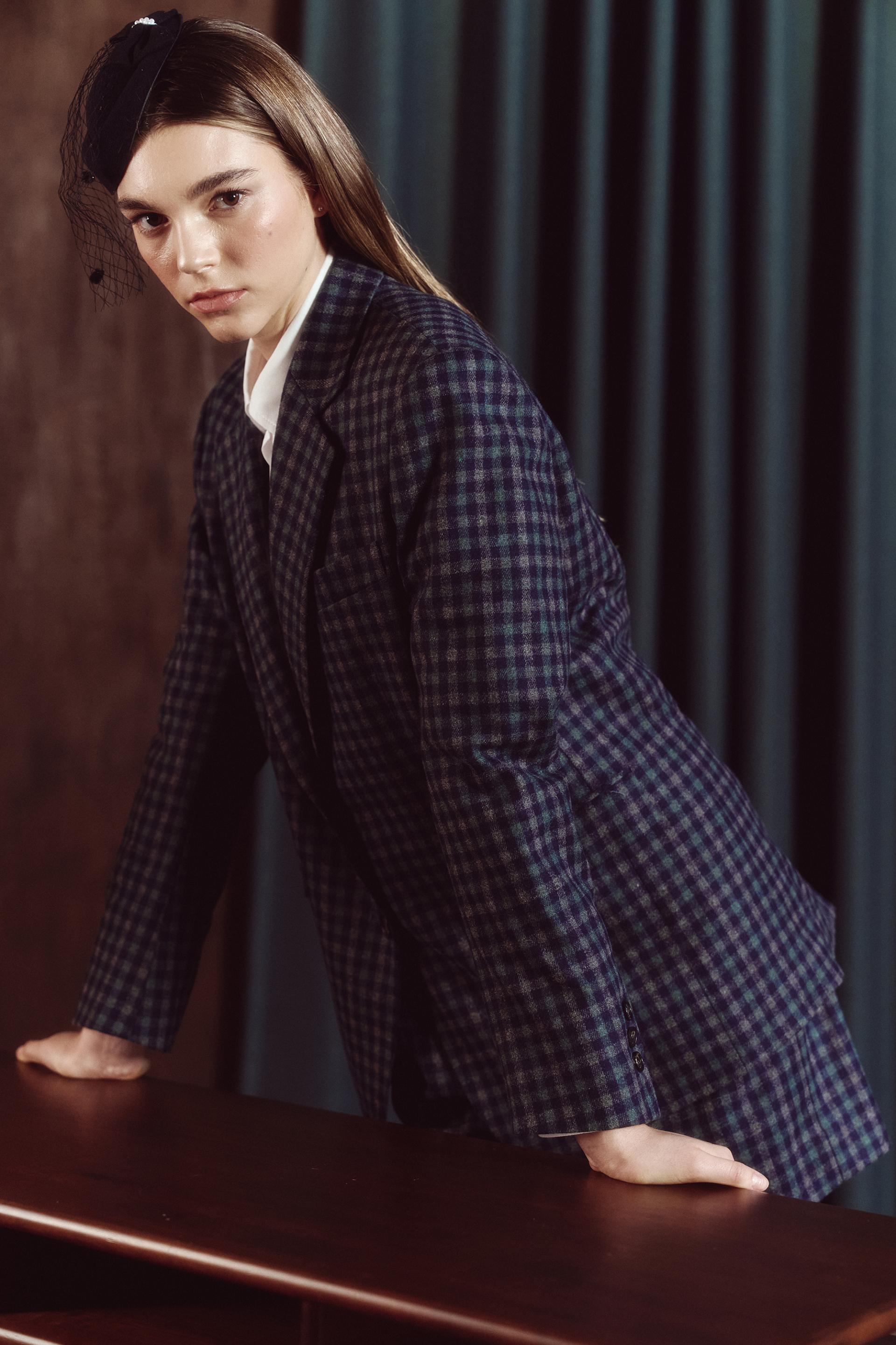 무드를 살려주는 구조적인 어깨선이 연출됩니다.
