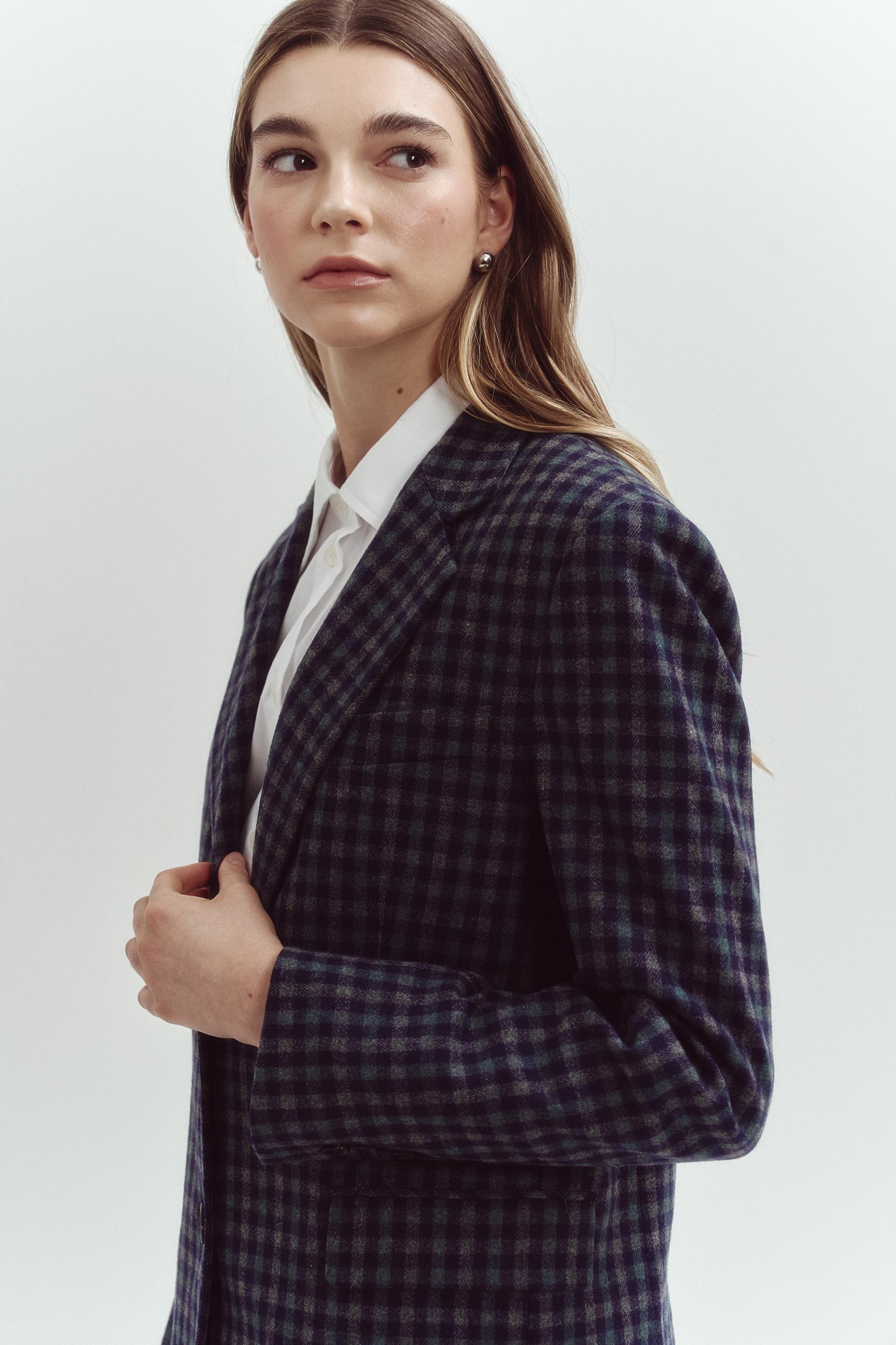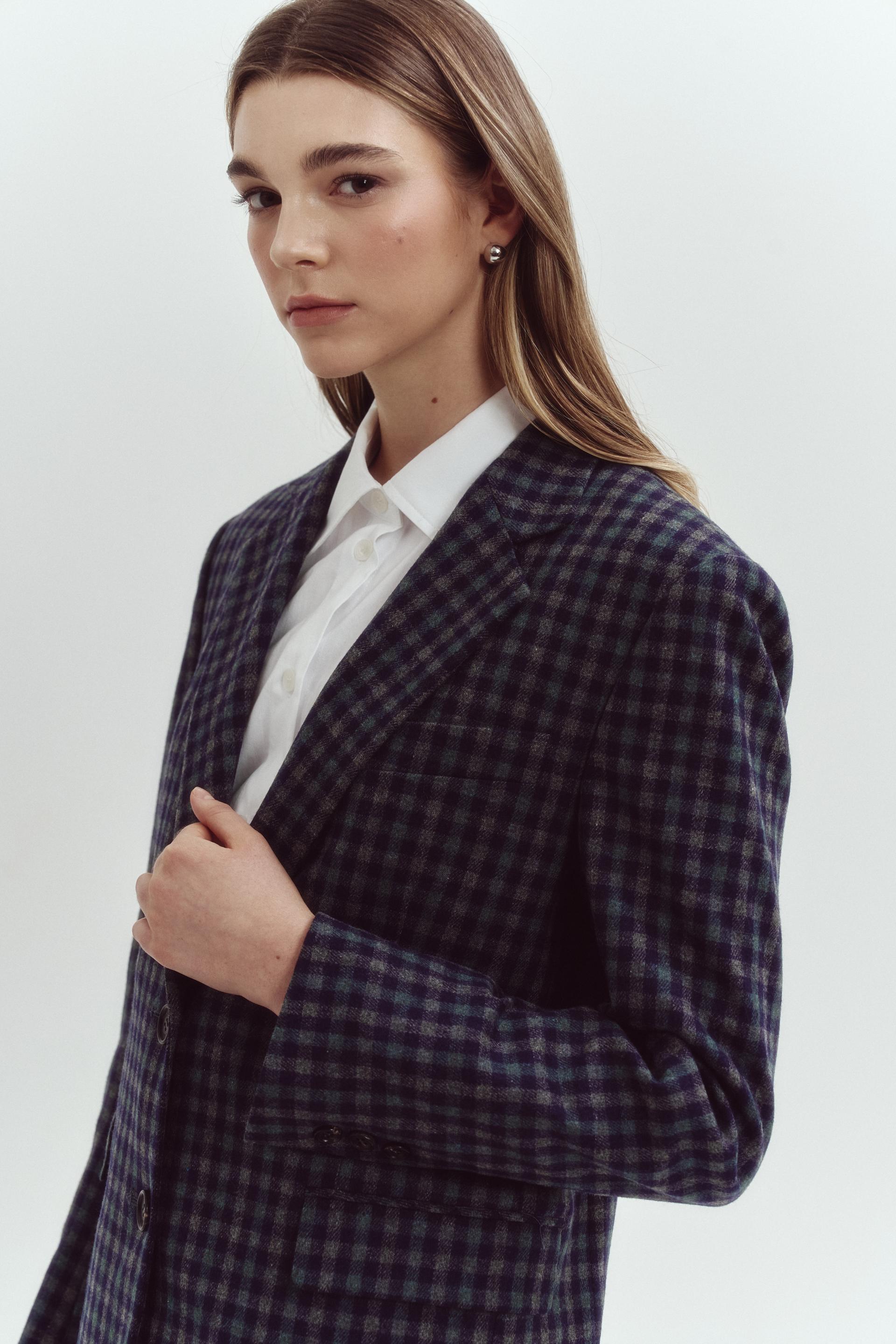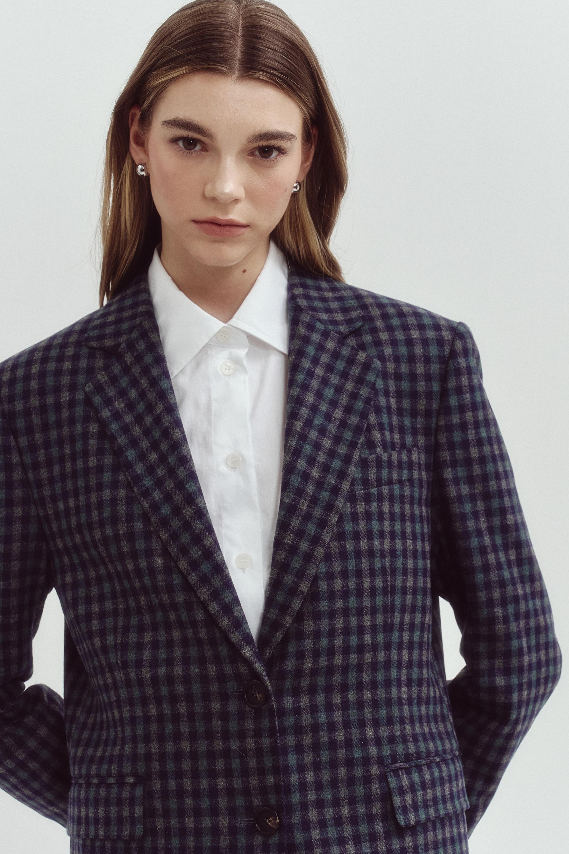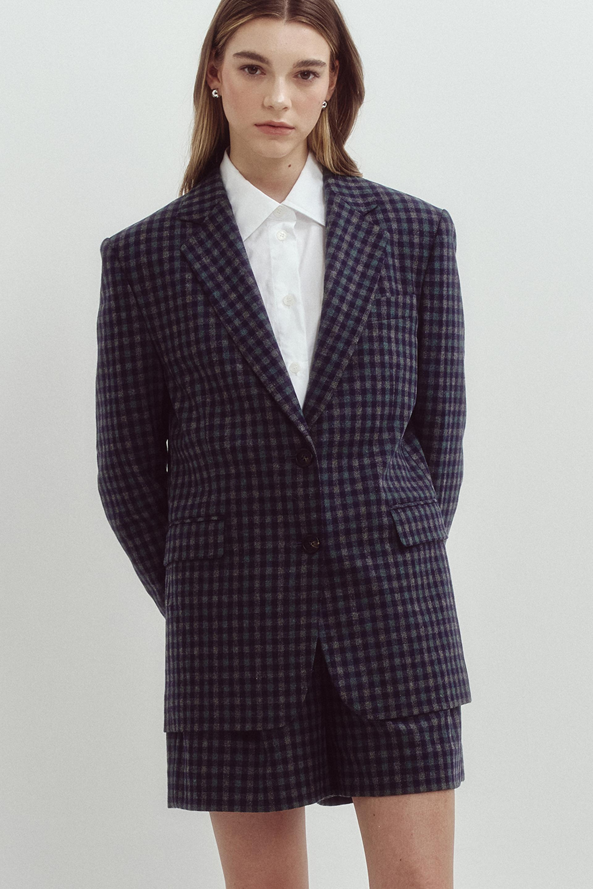 - 투 버튼 싱글 브레스티드 디자인으로,