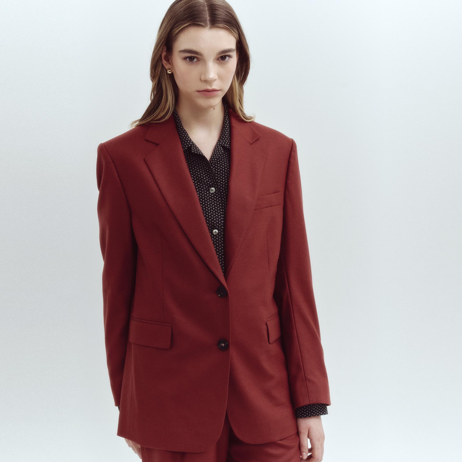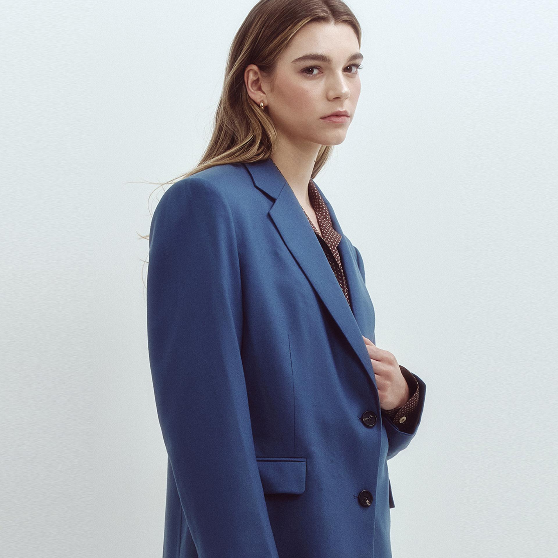- 어깨를 살짝 넓힌 오버핏 실루엣의 싱글 버튼 자켓