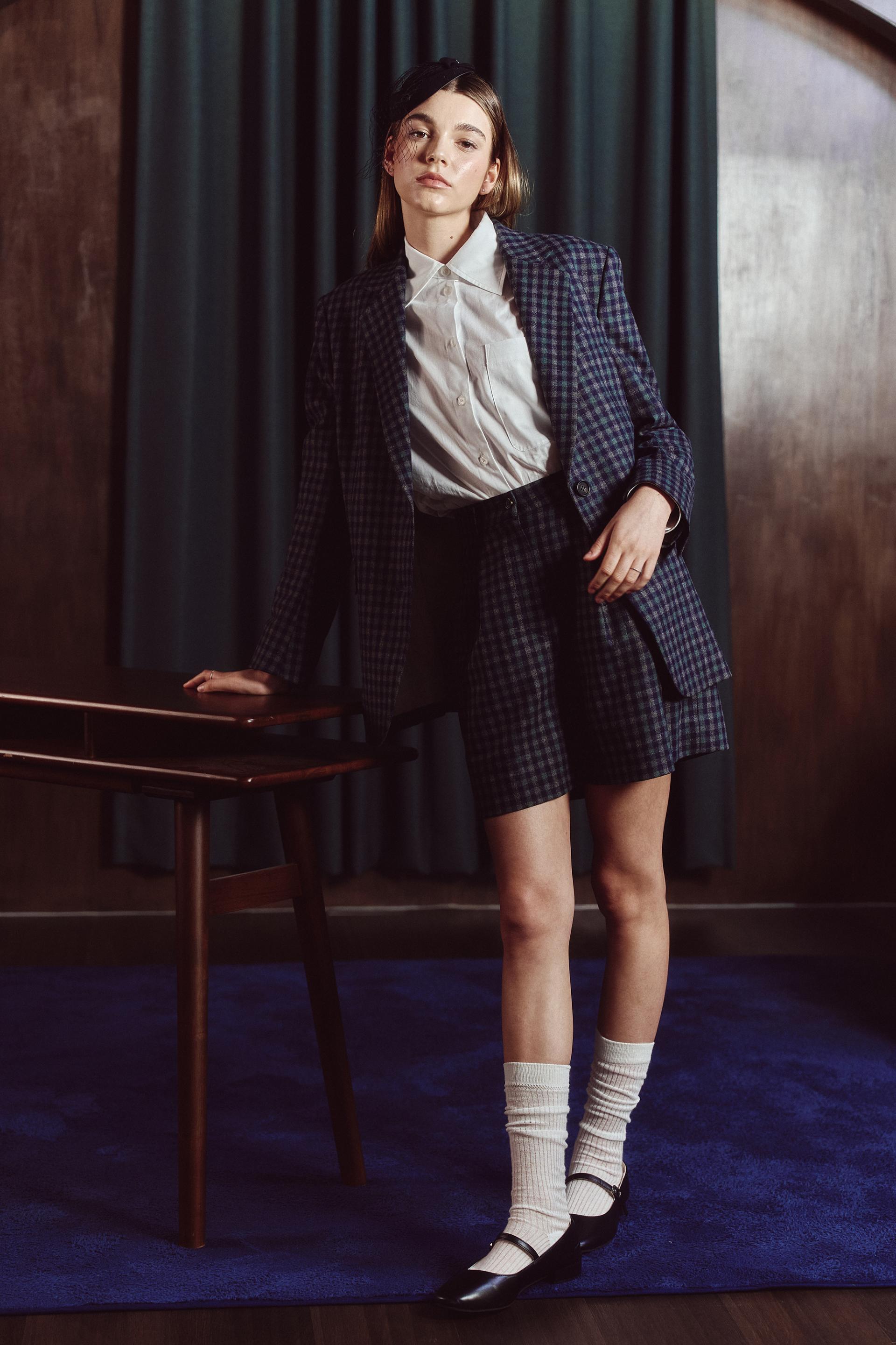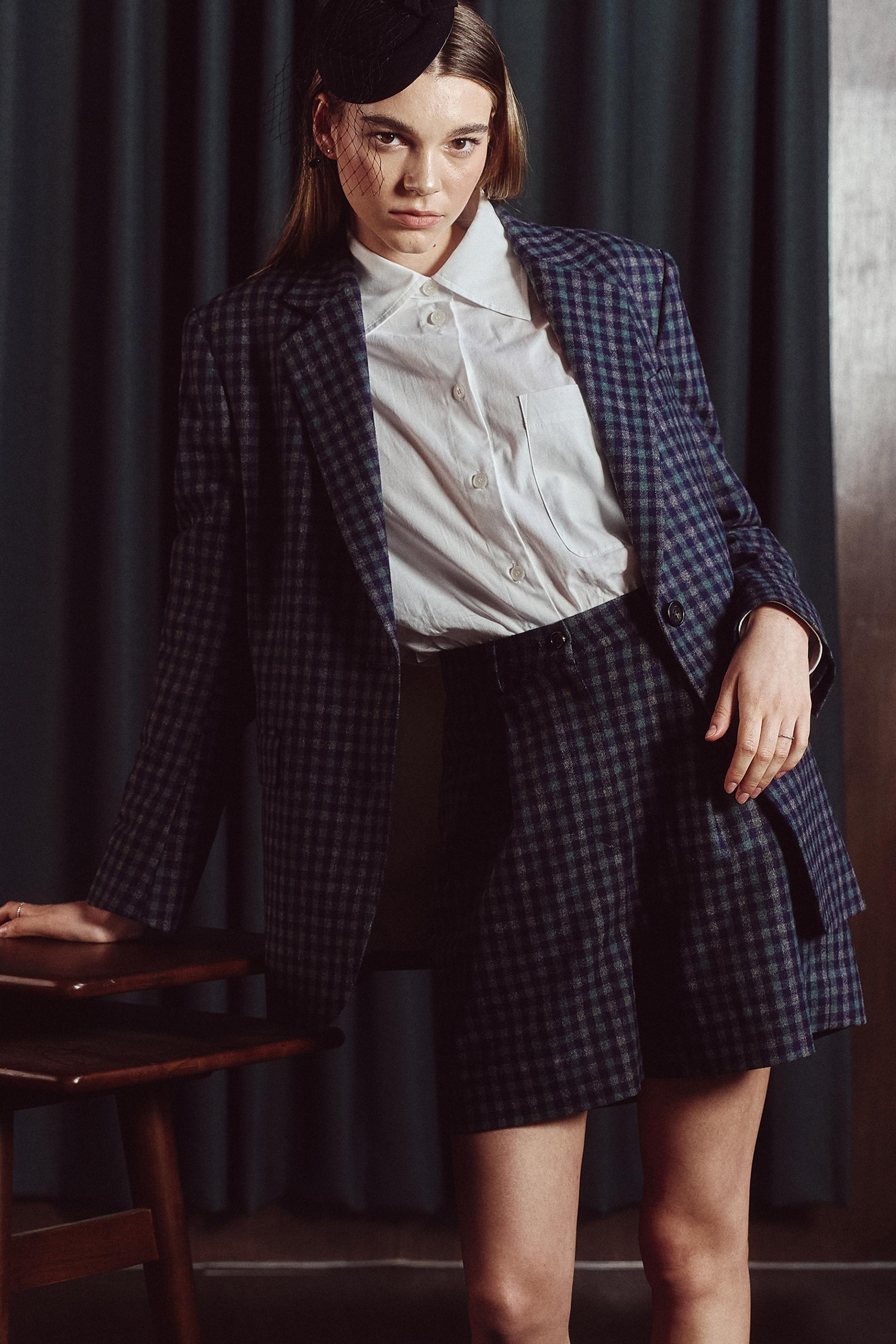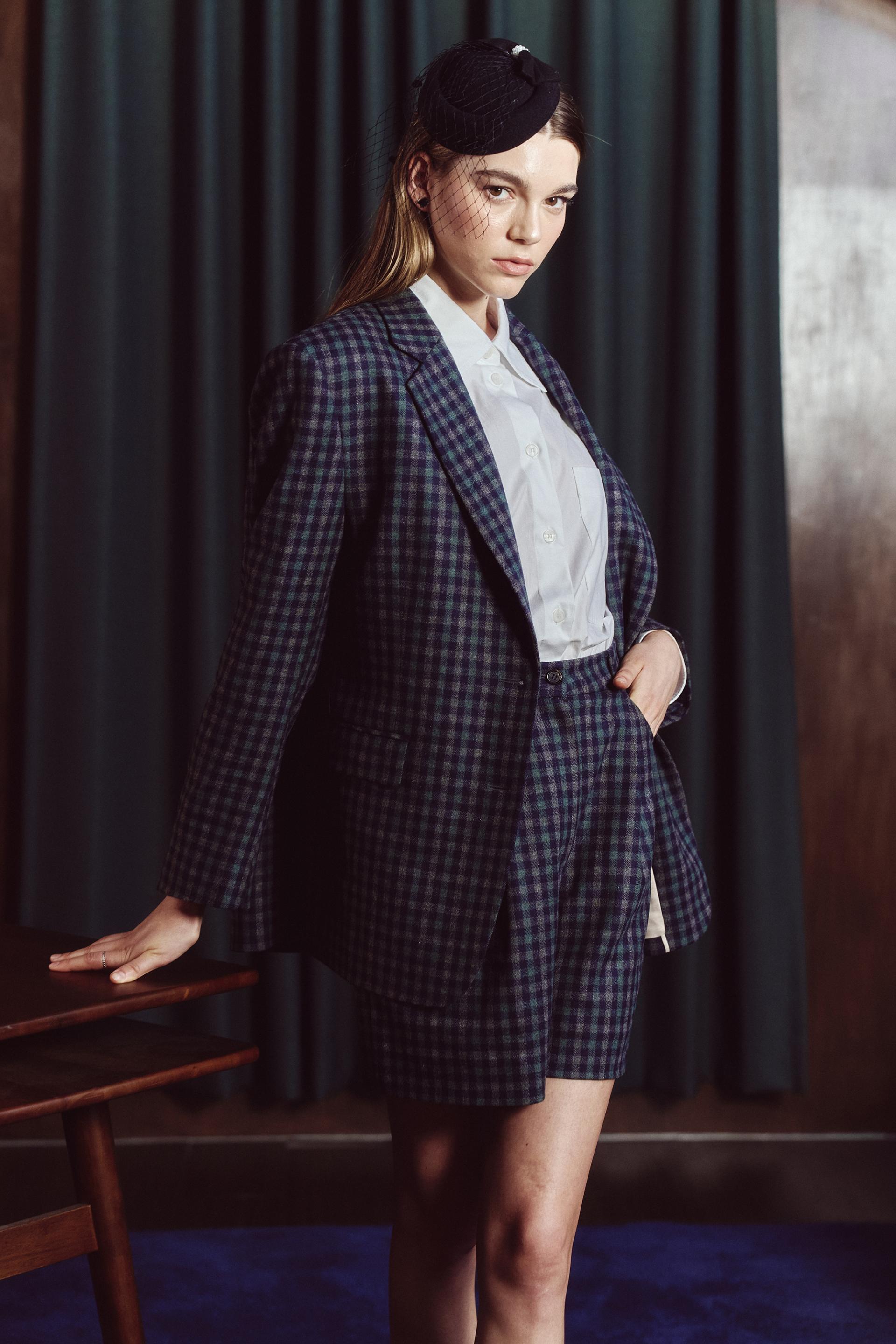 - 클래식 체크패턴이 자켓과 동일한 원단으로 제작되어,