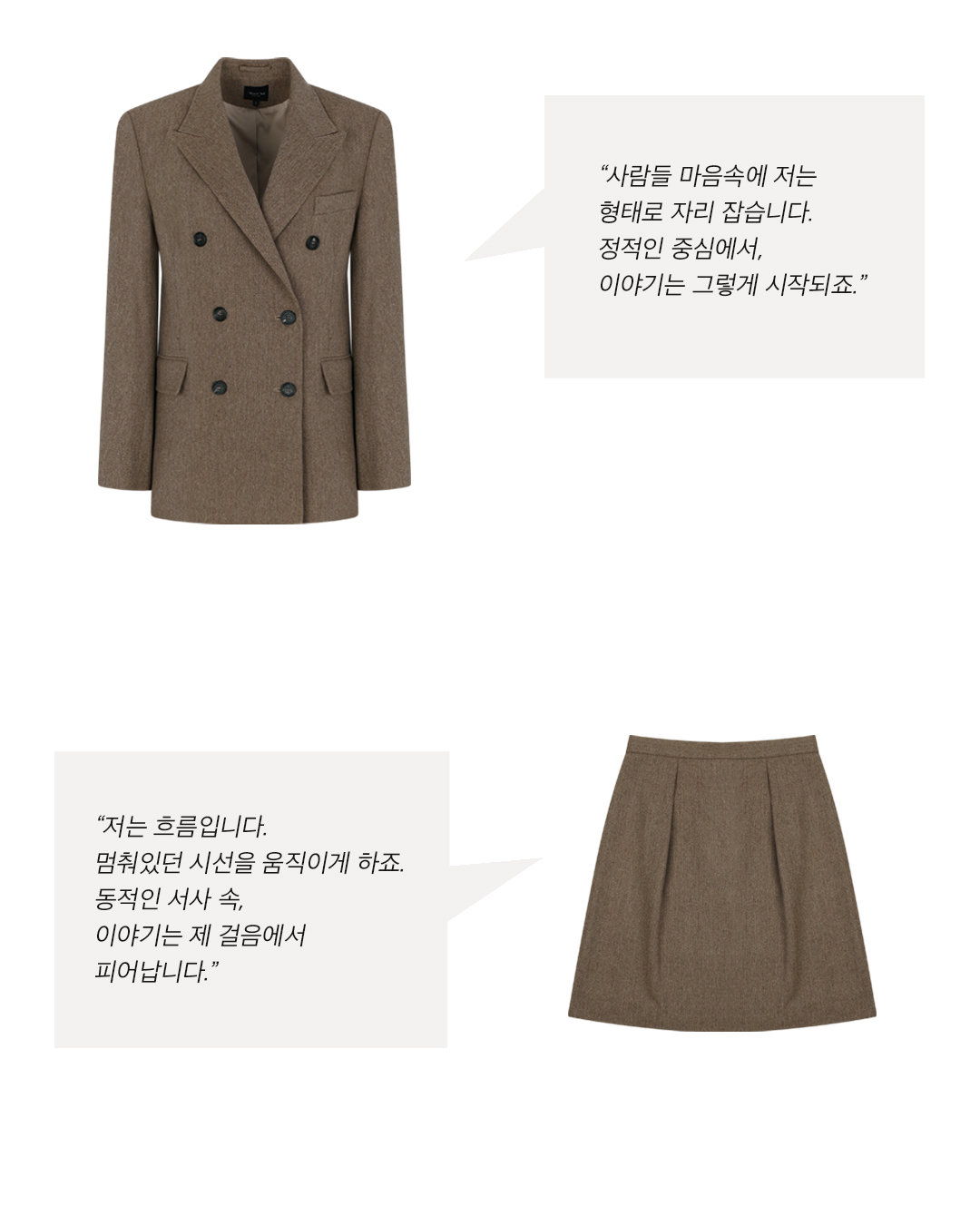 이야기의 시작은 자켓이, 스커트는 결말을 열어둡니다.