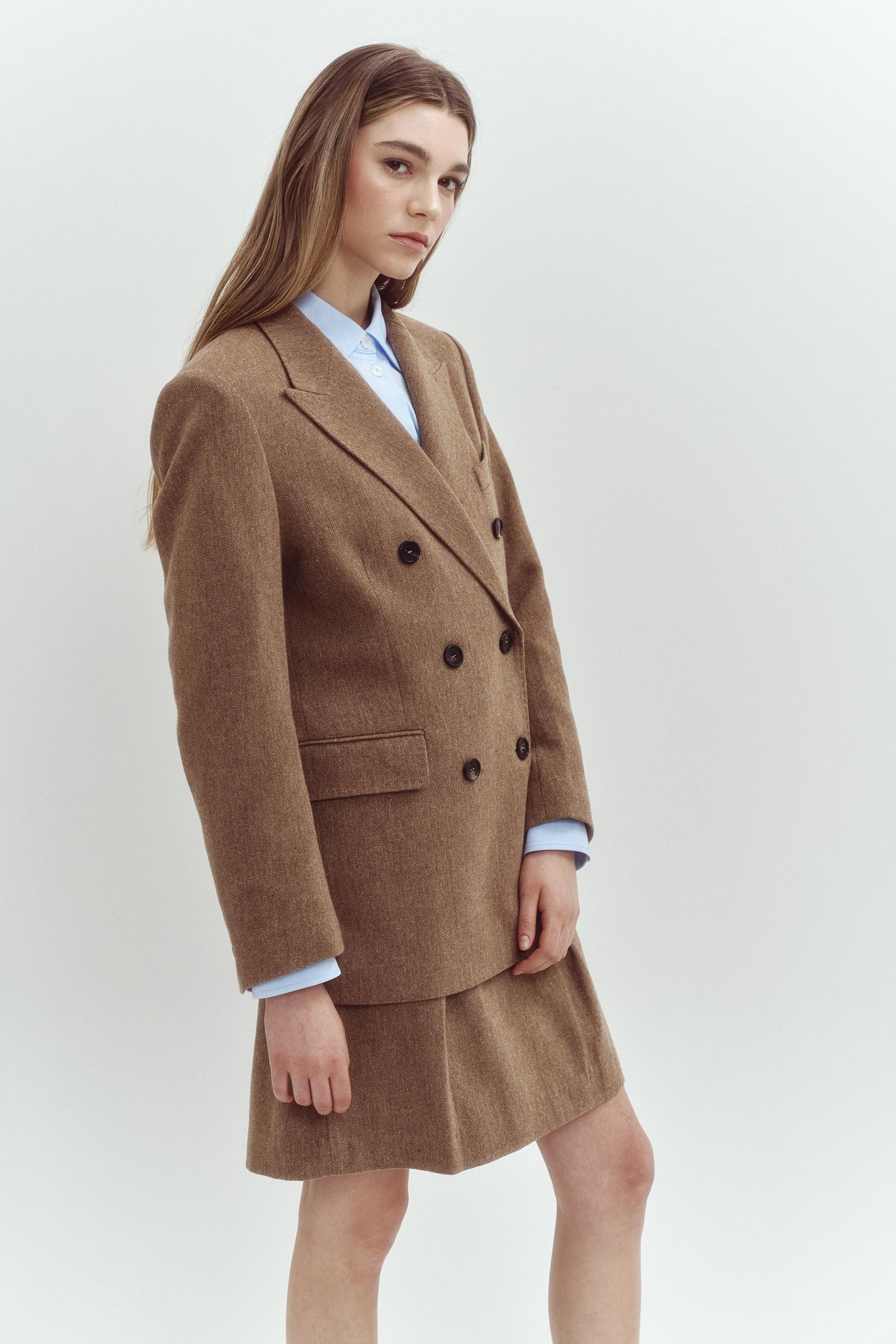 - 울 혼방소재로, 그 두께감이 중심을 잡아주며,